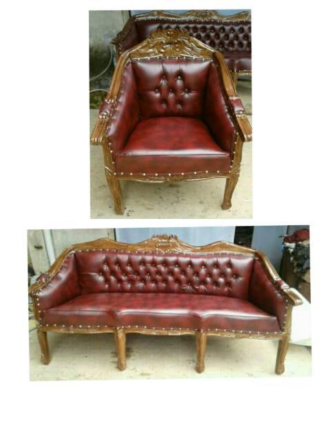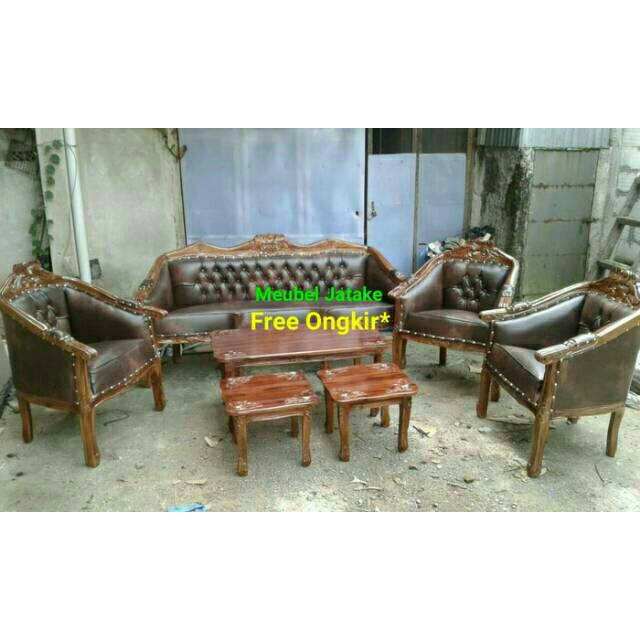 Kursi Tamu Jati Louis Bolong 3111 Merah Marun Meja Besar Meja Kecil 2 Sofa Jepara - Source