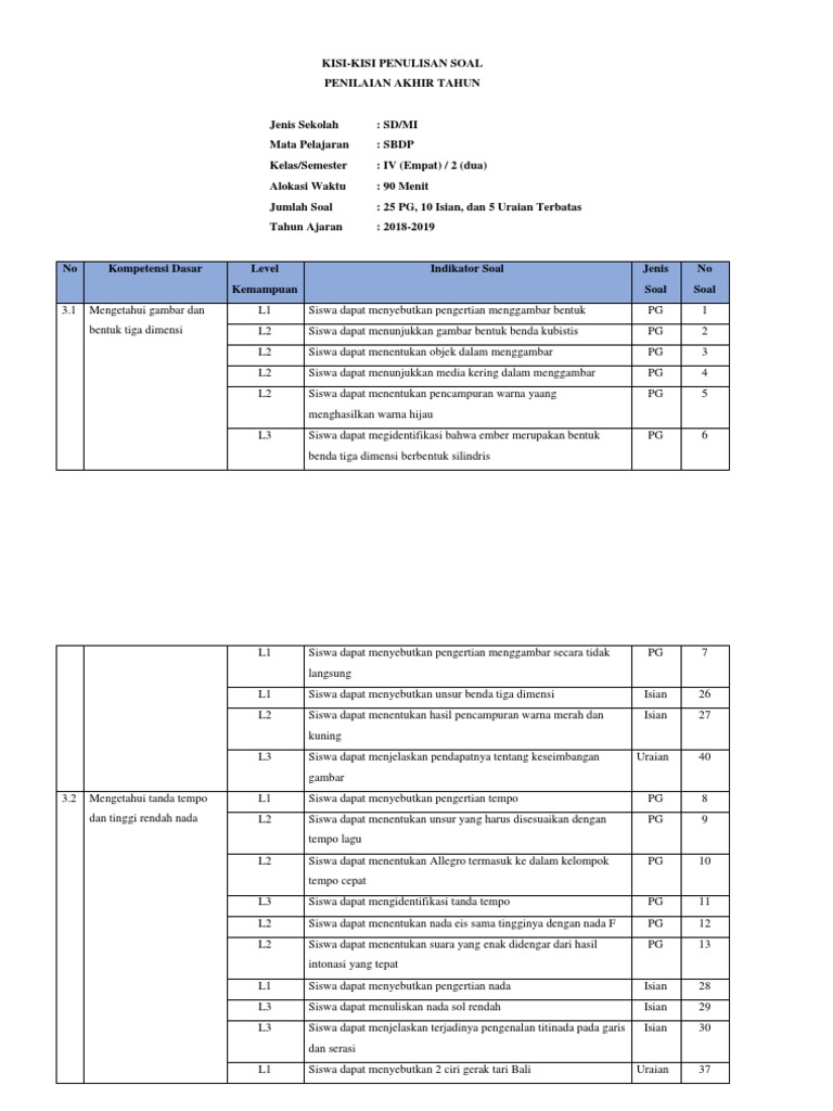 Kisi Kisi Pat Sbdp Kelas 4 - Source