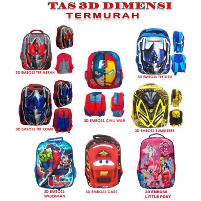 Tas Ransel Sd 3 Dimensi Emboss Timbul Little Pony Transformer Bumblebee Cars Spiderman - Source