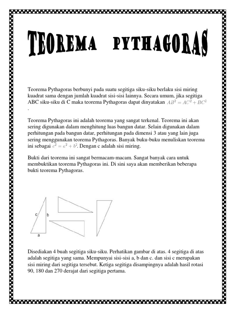 Teorema Pythagoras Berbunyi Pada Suatu Segitiga Siku - Source