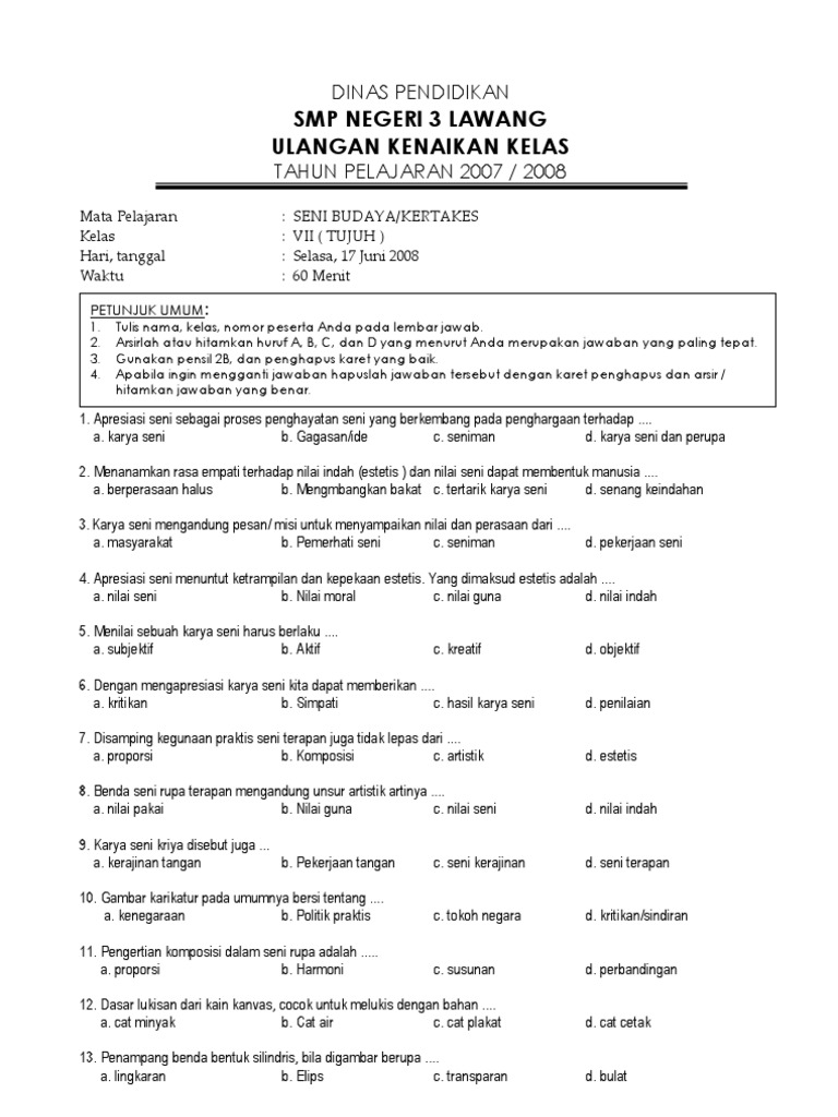 Doc Soal Latihan Usbn Senbud Smp Mts Ikaa Listiana - Source