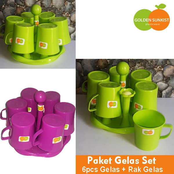Gelas Set Golden Sunkist 7 In 1 Isi 6 Pcs Gelas Cangkir Dan Rak Gelas - Source